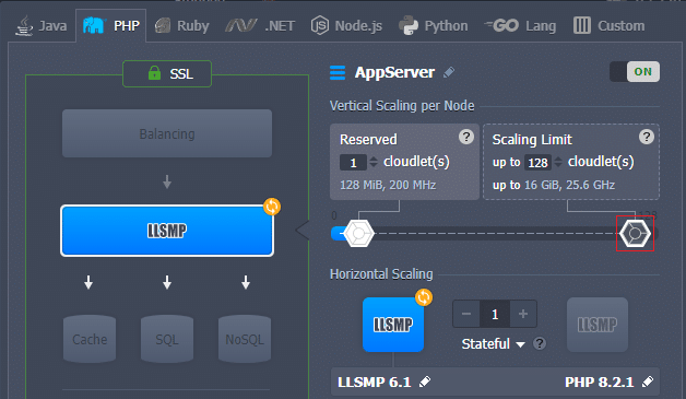 To get the most out of the solution, we recommend adding additional paid options for better performance and security. For instance, if you require more than 2 GB of RAM (16 cloudlets), the LiteSpeed Web Server as a part of the LLSMP stack will come with additional charges.
