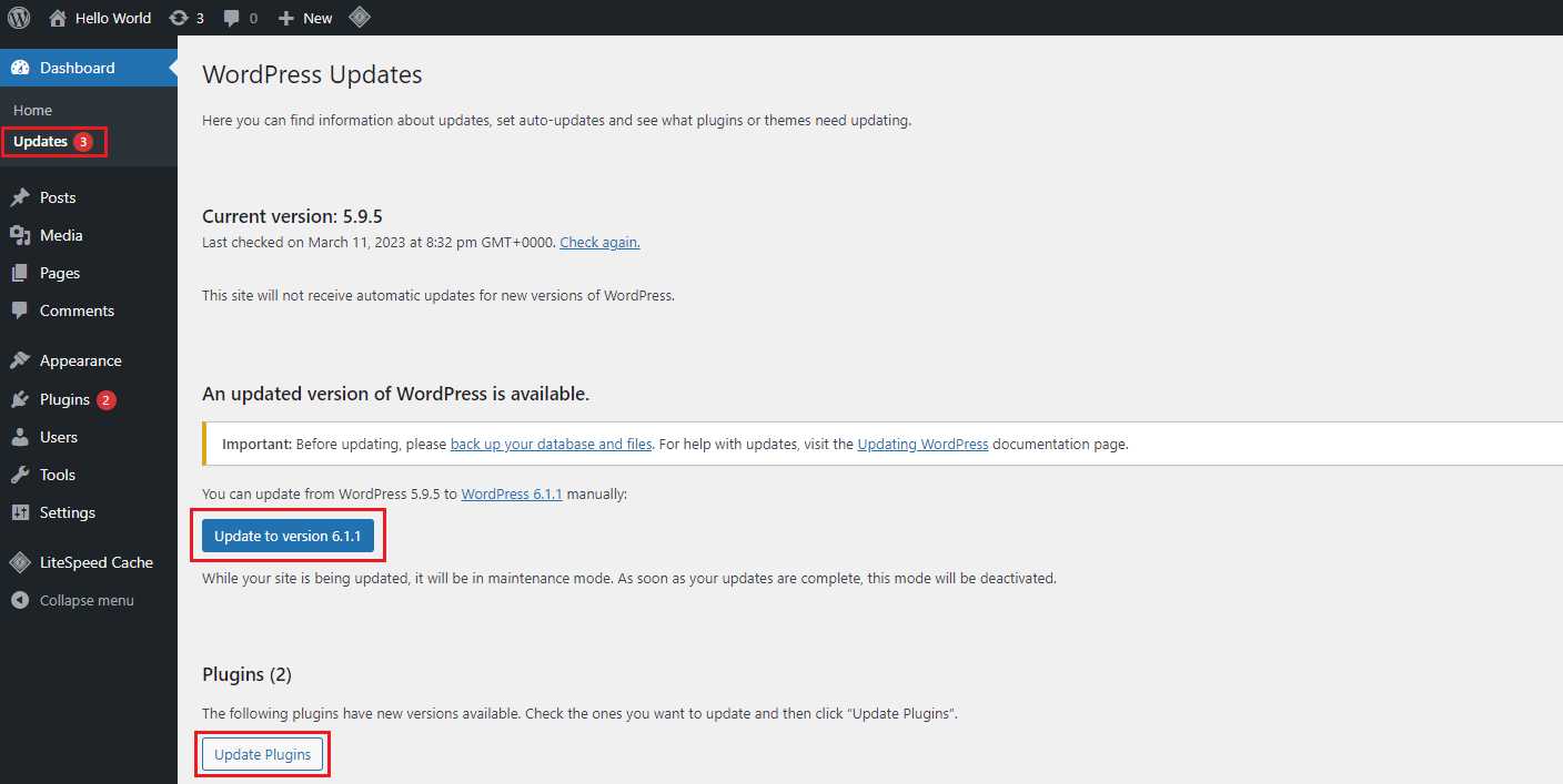 Keeping your software up-to-date is important to ensure optimal performance and security. To update WordPress and the LLSMP or LEMP stack: